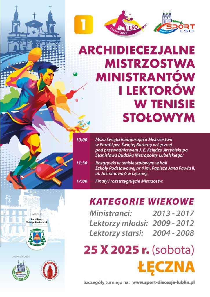 W sobotę, 25 października 2025 r., w Łęcznej odbędą się pierwsze Mistrzostwa Archidiecezji Lubelskiej Liturgicznej Służby Ołtarza w tenisie stołowym o Puchar Metropolity Lubelskiego, które odbędą się