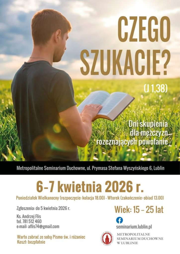 W dniach 6-7 kwietnia 2026 r. w Metropolitalnym Seminarium Duchownym w Lublinie odbędą się dni skupienia dla osób rozeznających swoje powołanie.
