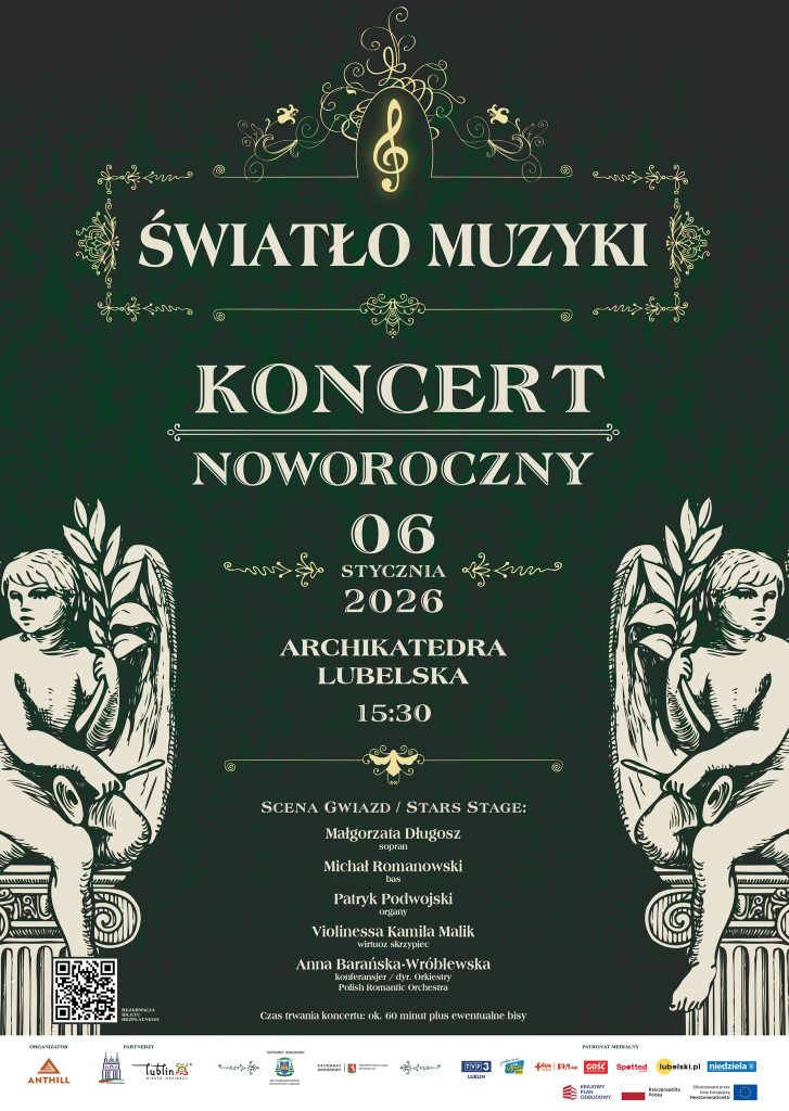 Archidiecezja Lubelska i Anthill zapraszają na Koncert Noworoczny „Światło Muzyki”, który odbędzie się 6 stycznia 2026 roku o godzinie 15:30 w Archikatedrze Lubelskiej pw. św. Jana Chrzciciela i św. Jana Ewangelisty.