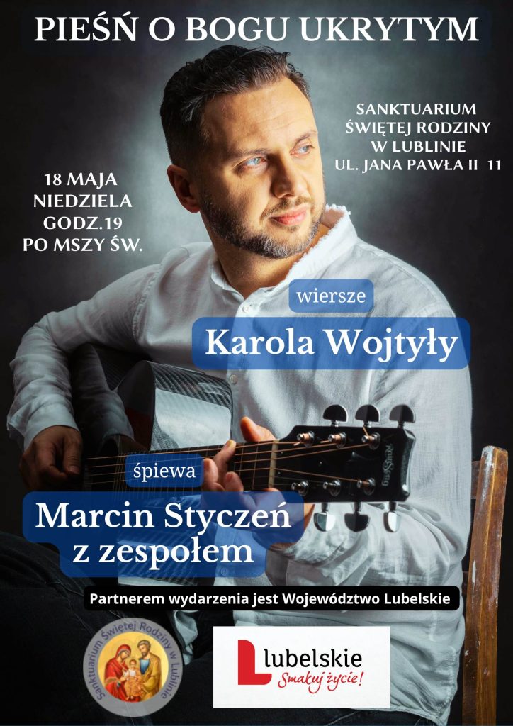 Po Mszy Świętej, o godz. 19.00, rozpocznie się Koncert piosenek do wierszy Karola Wojtyły pn. „Pieśń o Bogu ukrytym” w wykonaniu Marcina Stycznia – z wykształcenia dziennikarza, a z zamiłowania pieśniarza, kompozytora i autora tekstów. Towarzyszyć Mu będą koledzy z zespołu: Tomasz Pfeiffer na gitarze, Kornel Jasiński na gitarze basowej i Adam Szuraj na perkusji.