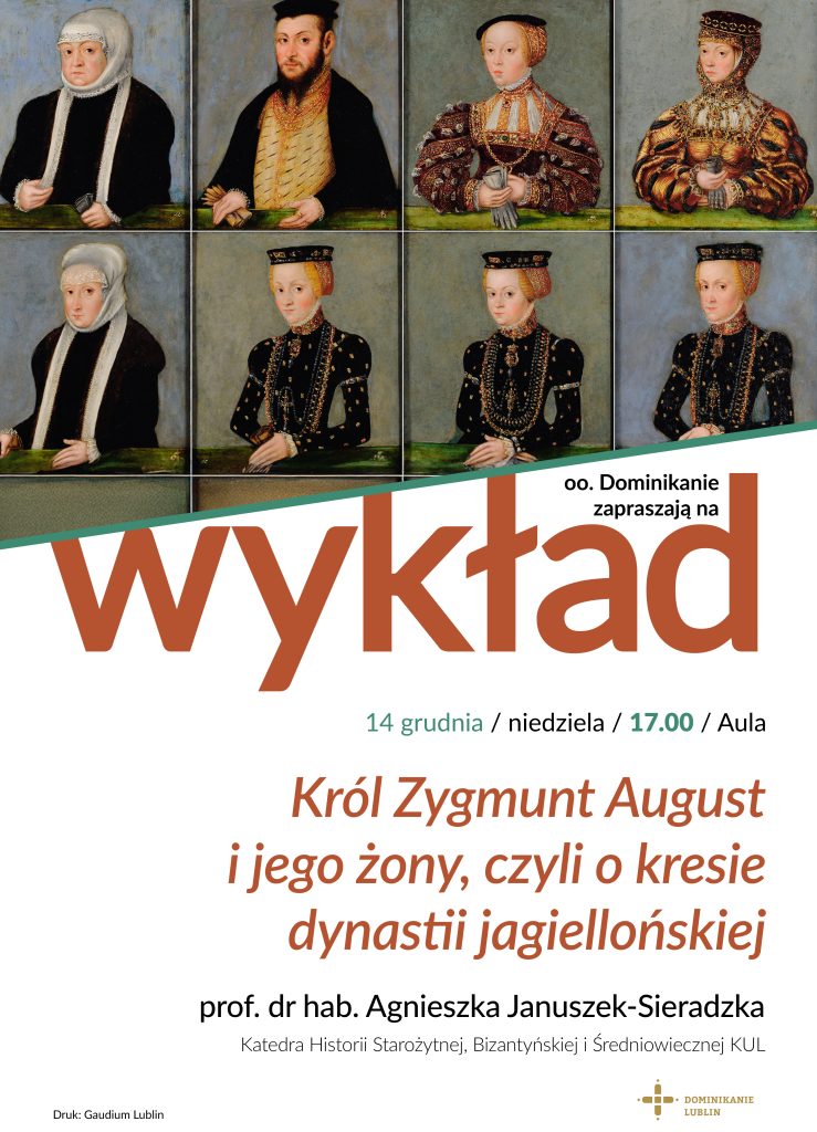wykład zatytułowany: “Król Zygmunt August i jego żony, czyli o kresie dynastii jagiellońskiej” wygłosi prof. dr hab. Agnieszka Januszek-Sieradzka, Katedra Historii Starożytnej, Bizantyńskiej i Średniowiecznej KUL.