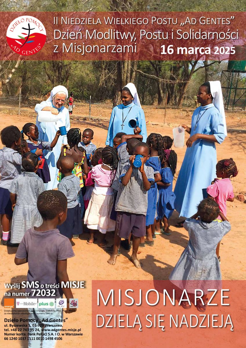 1. W czasie Wielkiego Postu otwieramy szerzej nasze serca na tchnienie Ducha Świętego, który wspiera nas w wypełnianiu powołania chrześcijańskiego i pomaga w realizowaniu największego przykazania Jezusa – przykazania miłości. W II niedzielę wielkopostną zwaną „ad gentes” Kościół zachęca nas do modlitwy i materialnej pomocy polskim Misjonarzom i Misjonarkom. W tym roku towarzyszy naszemu Dniowi Modlitwy, Postu i Solidarności z Misjonarzami hasło: „Misjonarze dzielą się nadzieją”. Pragniemy zwrócić uwagę na to, jak ważną rolę pełnią misjonarze. Ich trwanie na misjach, niekiedy w bardzo trudnych warunkach życiowych, ubóstwie i wśród licznych zagrożeń jest źródłem nadziei dla tych, do których zostali posłani przez Kościół ze słowem Ewangelii. Misjonarze są dziedzicami Bożej nadziei, nie tylko tej, która dotyczy lepszego, bardziej sprawiedliwego i bezpiecznego świata. Oni niosą ludziom nadzieję zbawienia i umacniają w przekonaniu, że ostatecznie dobro zawsze zwycięża.