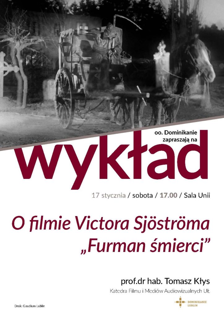 wykład: O filmie Victora Sjöströma „Furman śmierci” – wygłosi prof.dr hab. Tomasz Kłys, Katedra Filmu i Mediów Audiowizualnych UŁ.
