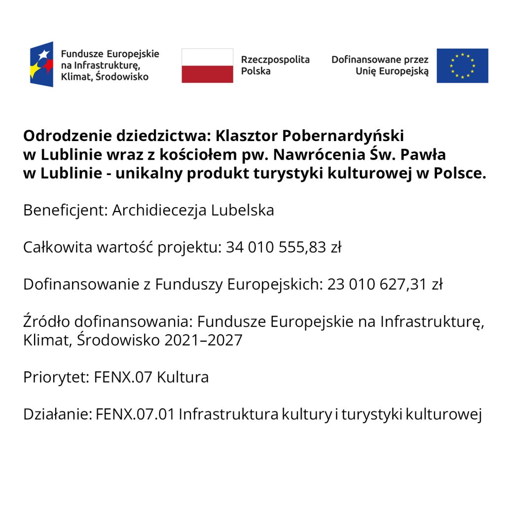 Archidiecezja Lubelska rozpoczyna realizację przedsięwzięcia pn. „Odrodzenie dziedzictwa: Klasztor Pobernardyński w Lublinie wraz z kościołem pw. Nawrócenia Św. Pawła w Lublinie – unikalny produkt turystyki kulturowej w Polsce”.