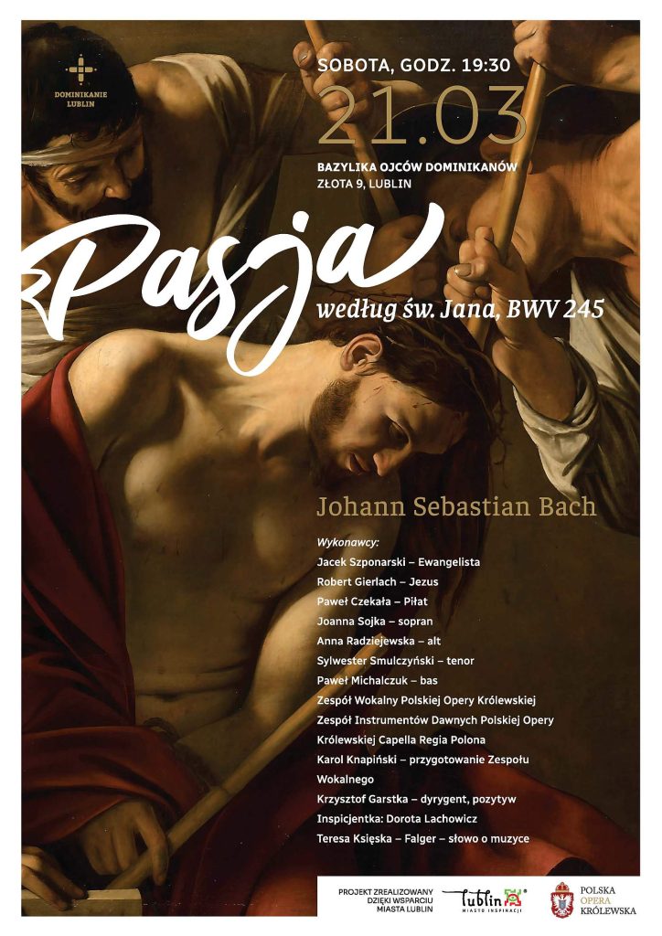 Ojcowie Dominikanie oraz Polska Opera Królewska zapraszają na wykonanie Pasji według św. Jana – Johanna Sebastiana Bacha – BWV 245. Wielkopostny koncert będzie miał miejsce w sobotę, 21 marca 2026 r., o godz. 19.30, w Bazylice Ojców Dominikanów w Lublinie (ul. Złota 9)