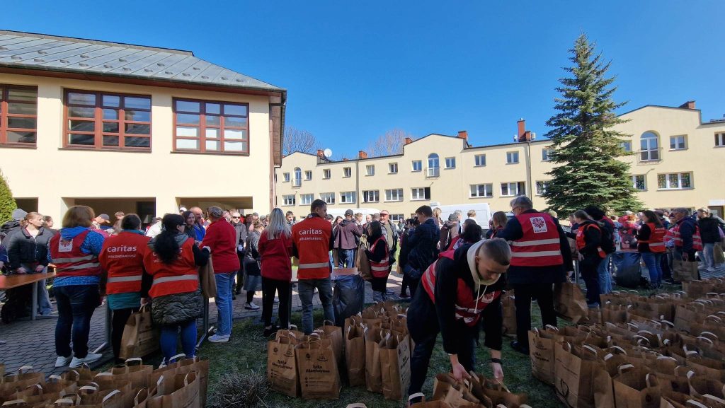 Kilkaset osób, wraz z pracownikami i wolontariuszami Caritas uczestniczyło w krótkiej modlitwie, a następnie dzieliło się poświęconym przez Księdza Arcybiskupa jajkiem i składało sobie życzenia. Uczestnikom spotkania rozdano także paczki żywnościowe, przygotowane m.in. z produktów zebranych podczas minionej Zbiórki Żywności „Tak. Pomagam! Paczki z żywnością odebrało ok. 600 osób.