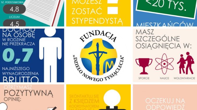W sprawach związanych z uzyskaniem stypendium prosimy o kontakt mailowy z koordynatorem fundacji Dzieło Nowego Tysiąclecia w Archidiecezji Lubelskiej, ks. Mateuszem B. Wójcikiem (ks.mateusz.wojcik@dzielo.pl) przesyłając skan wypełnionego dokumentu: „Karta informacyjna kandydata ubiegającego się o przyznanie stypendium Fundacji „Dzieło Nowego Tysiąclecia” na rok szkolny 2025/2026”