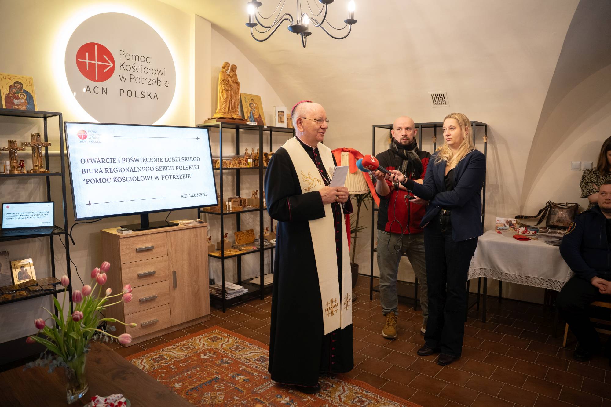 W piątek, 13 lutego 2026 roku, zostało otwarte w Lublinie (ul. Podwale 3) nowe biuro regionalne Sekcji Polskiej Pomoc Kościołowi w Potrzebie. Uroczystości przewodniczył Abp Stanisław Budzik Metropolita Lubelski wraz z ks. dr. hab. Jan W. Żelaznym, Dyrektorem Sekcji Polskiej PKWP.