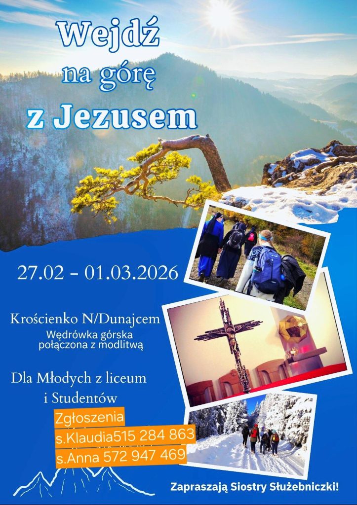 Zgromadzenie Sióstr Służebniczek Bogarodzicy Dziewicy Niepokalanie Poczętej – Siostry Służebniczki Dębickie zapraszają na rekolekcje w drodze – wędrówkę górską w połączeniu z modlitwą w dniach 27 lutego – 1 marca 2026 r. w Krościenku nad Dunajcem.