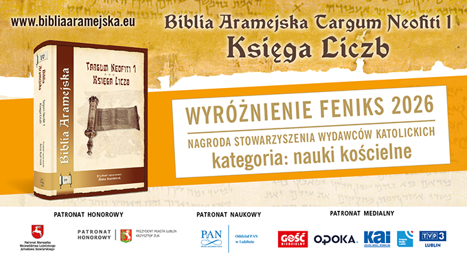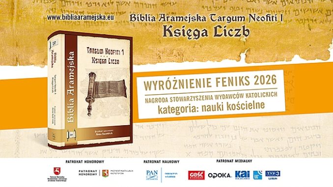 Wydawnictwo Archidiecezji Lubelskiej „Gaudium” otrzymało wyróżnienie w kategorii nauki kościelne w konkursie o Nagrodę Stowarzyszenia Wydawców Katolickich FENIKS 2026. Nagrodzona została publikacja Biblia Aramejska: Targum Neofiti 1. Księga Liczb, przygotowana przez prof. Annę Kuśmirek z Uniwersytetu Kardynała Stefana Wyszyńskiego w Warszawie.