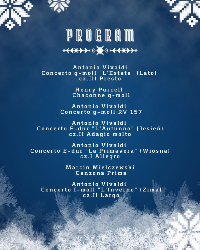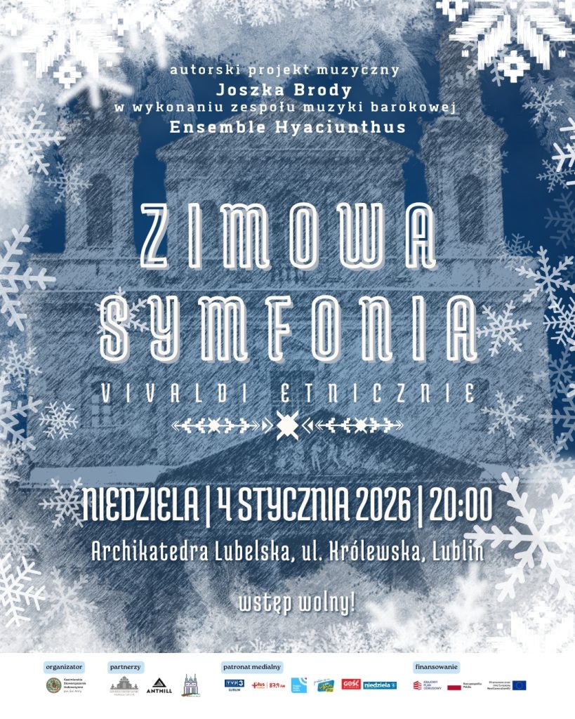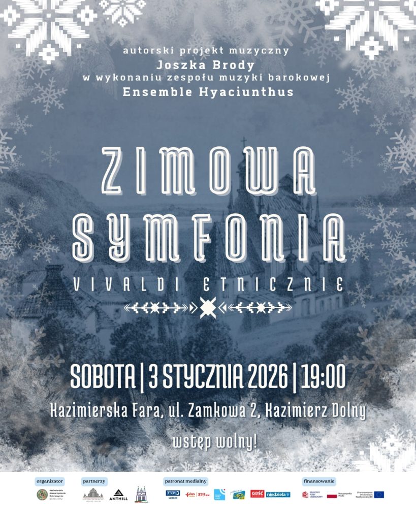 Wydarzenie Zimowa Symfonia zaprasza na wyjątkowe koncerty barokowe w zimowej odsłonie, łączące muzykę dawną z nowoczesną warstwą interpretacyjną, edukacją artystyczną i rozwiązaniami multimedialnymi. W ramach przedsięwzięcia w kościele farnym w Kazimierzu Dolnym oraz w Archikatedrze Lubelskiej zabrzmi specjalnie przygotowane preludium inspirowane dziedzictwem polskiego baroku oraz cykl Cztery pory roku Antonio Vivaldiego, a ideą projektu jest popularyzacja repertuaru barokowego, integracja środowisk twórczych oraz pokazanie potencjału twórczego wykorzystania sztucznej inteligencji w kulturze.
