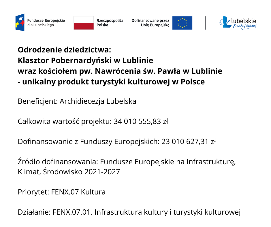 „Pomniki Historii – duże i małe. Bogactwo i różnorodność dziedzictwa kulturowego Lubelszczyzny – ochrona i udostępnianie wybranych obiektów sakralnych Lublina i Kazimierza Dolnego”